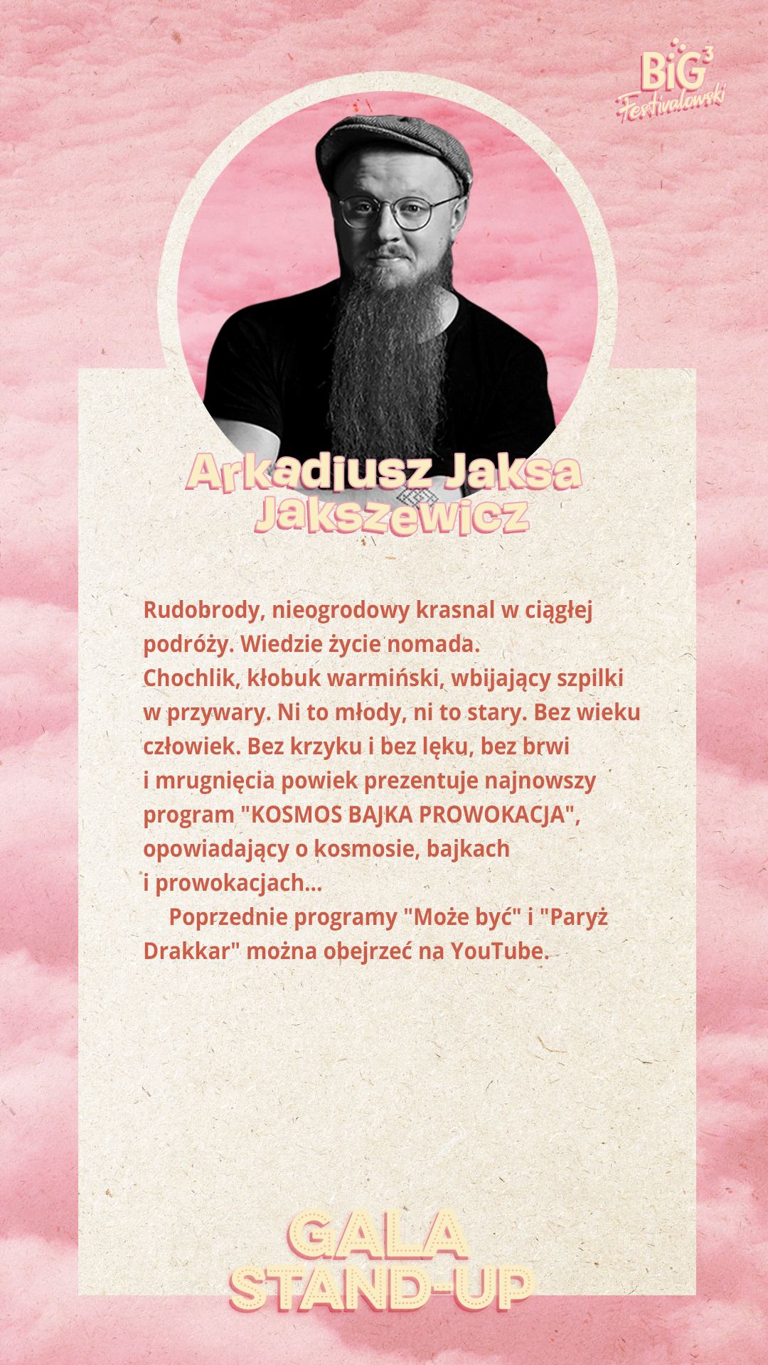 *Śmiech to zdrowie, a z trzydniowym karnetem na BiG Festivalowski oszczędzasz 50% na Gali Stand-up – pod warunkiem zakupu wyłącznie w tej samej bileterii, w której zakupisz karnet.
